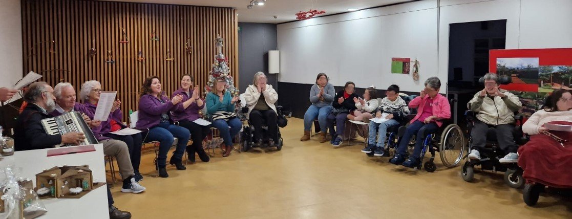 Se les hizo entrega de 60 Belenes estrella en una de sus salas de actividades, y aunque por horario no estaban todos, pudimos disfrutar con ellos cantando los villancicos de forma magistral y muy animosa por su parte.